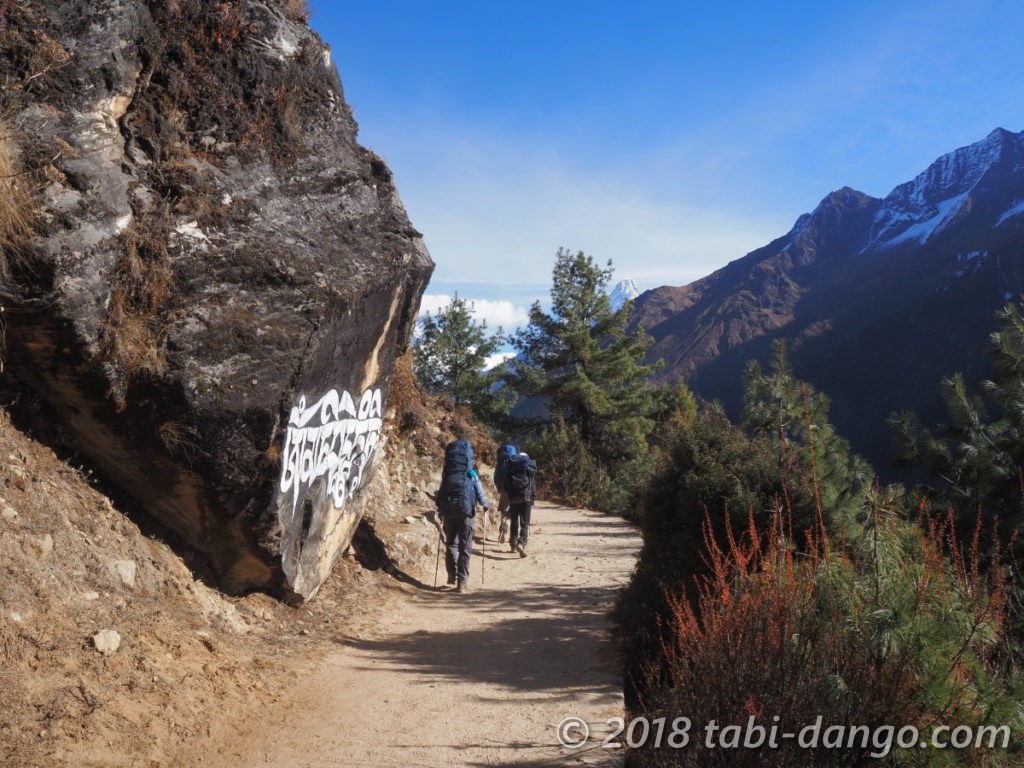 クムジュンまではシャンボチェの丘へ急登を行くのが速いのですが、私たちは遠回りのキャンズマ経由のルートを選びました。というのもこの道は「世界一美しいトラバース道」と呼ばれているのです!