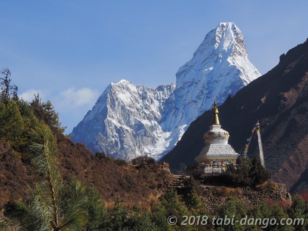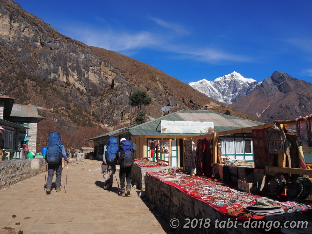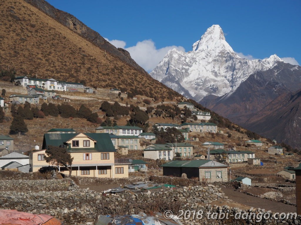 カンテガ(6783m)、タムセルク(6618m)もよく見えて、時間があればこの村で数日ゆっくりするのも良さそうだなと思いました。