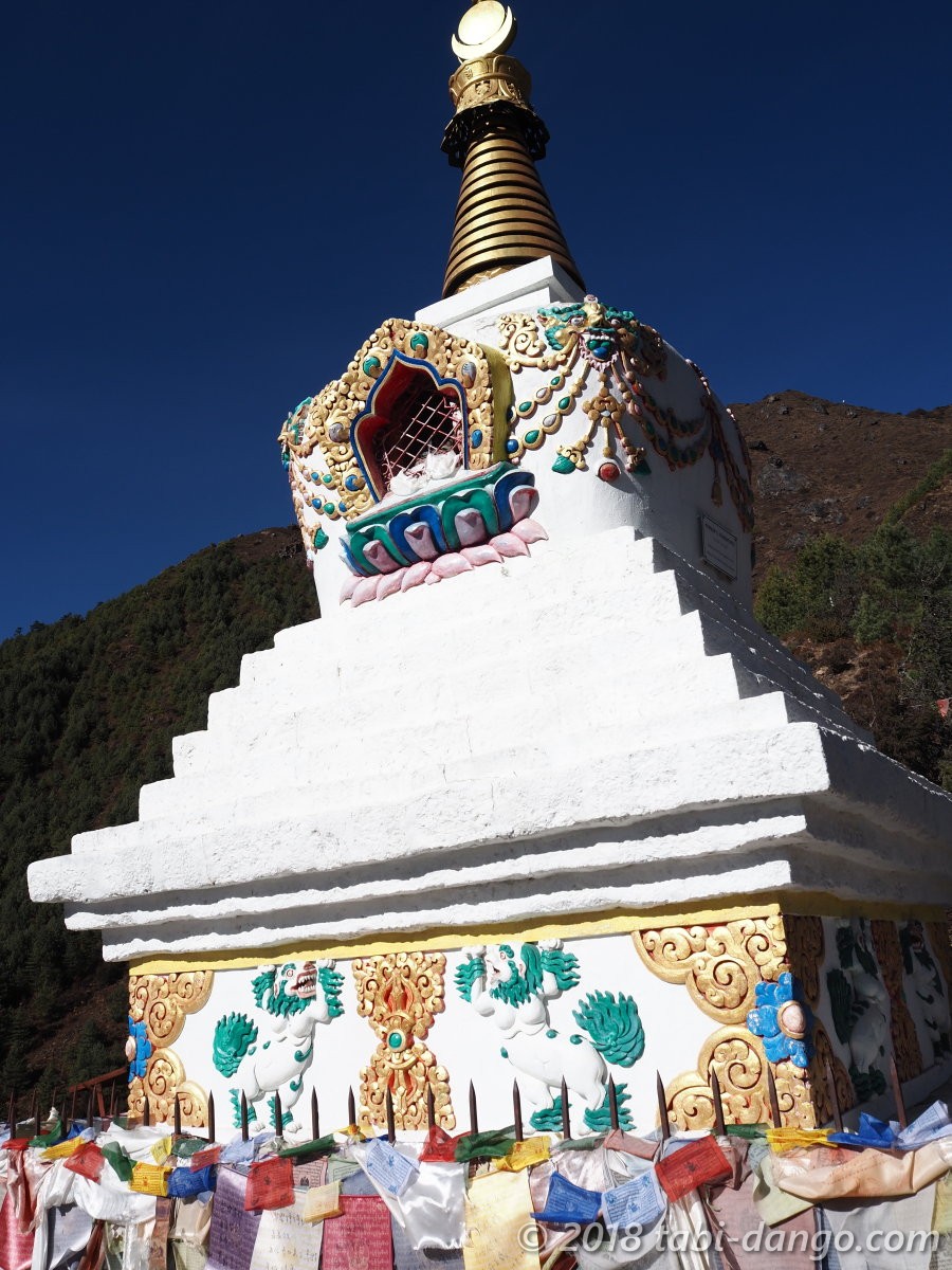 エベレストに初登頂したシェルパ、テンジン・ノルゲイの記念チョルテン。