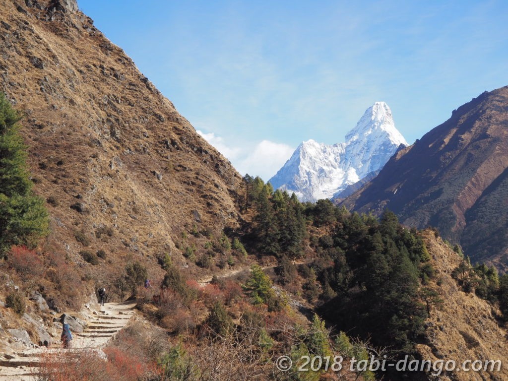 絶景のトラバース道でなんといっても魅力的なのがアマダブラム(6814m)。ゆったりと構えた姿がとても優美です。