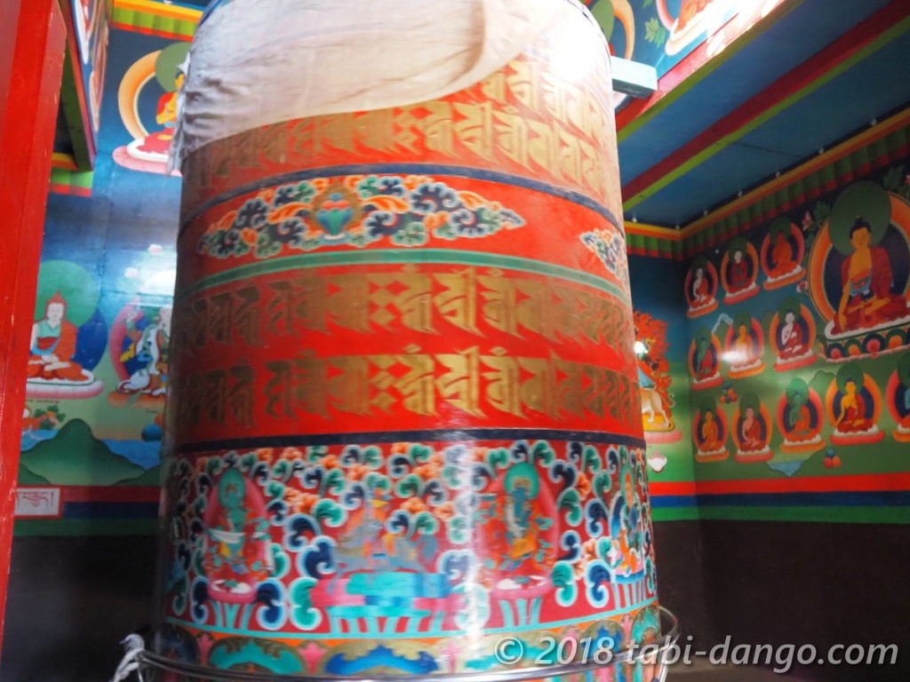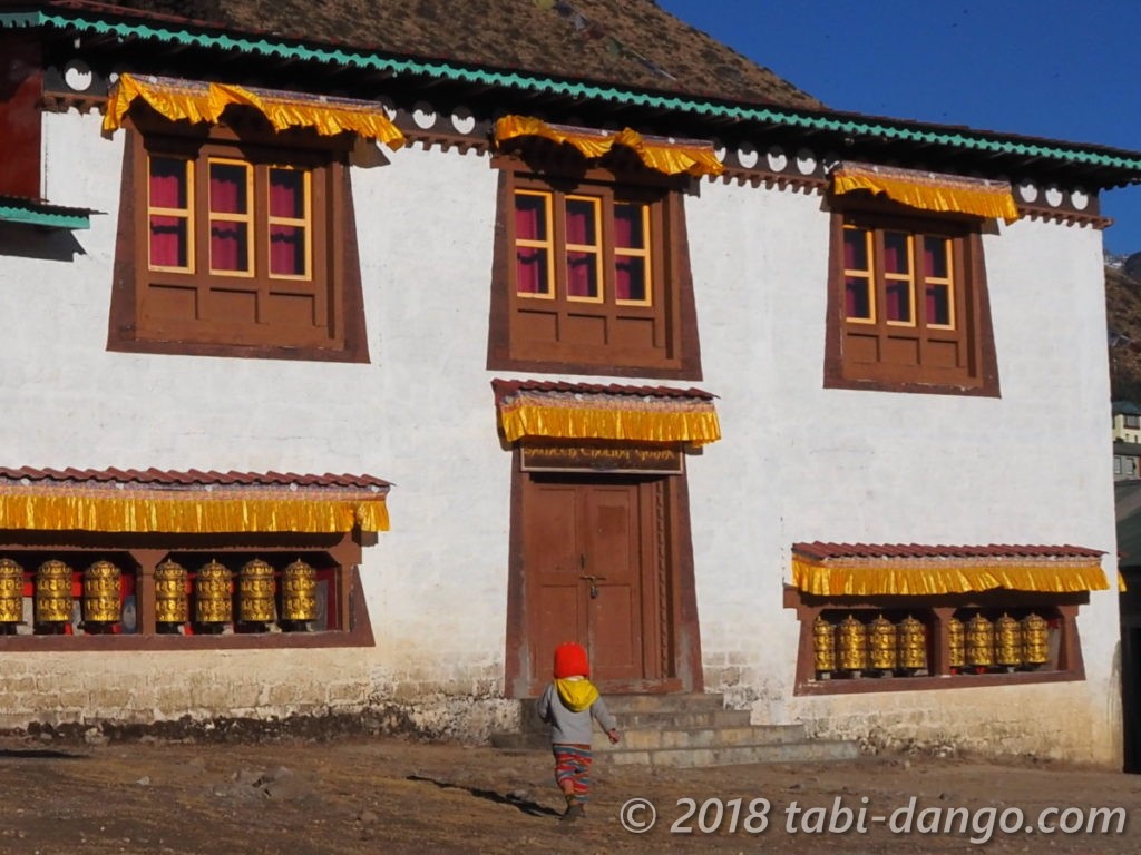 ゴンパの横では冷たい外の水道で洗濯する女性たち。ゴンパは壁の装飾も鮮やかで立派。大きなマニ車もありました。でもお堂のドアには鍵がかかっていて、楽しみにしていたイエティの頭の皮は見られませんでした。28年前にも見逃したのでとっても残念!