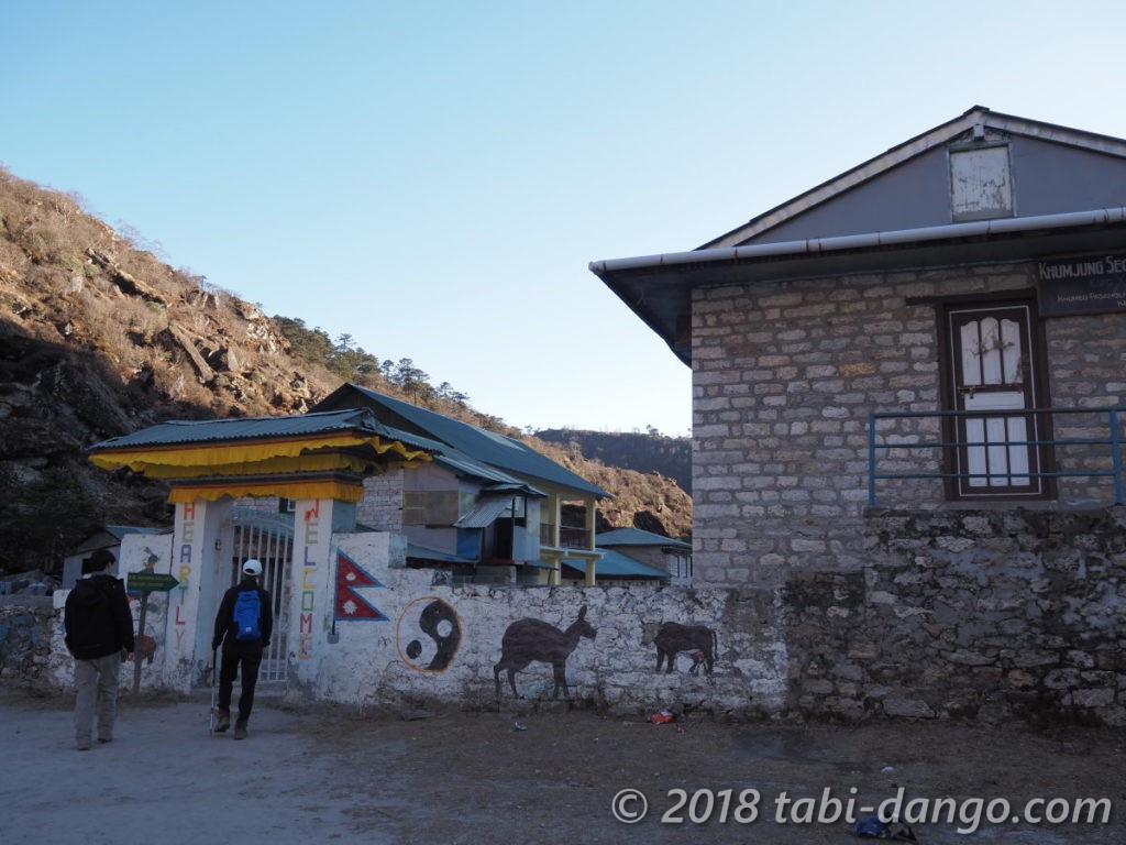 クムジュンではGoogle Mapで評判のよい宿を目指しており、道端で水くみをしていたおじさんに場所を尋ねると、「そのロッジのオーナーは冬だからカトマンズに行ってしまったよ」と。12月のこの時期、半分以上の宿が冬季休業していました。