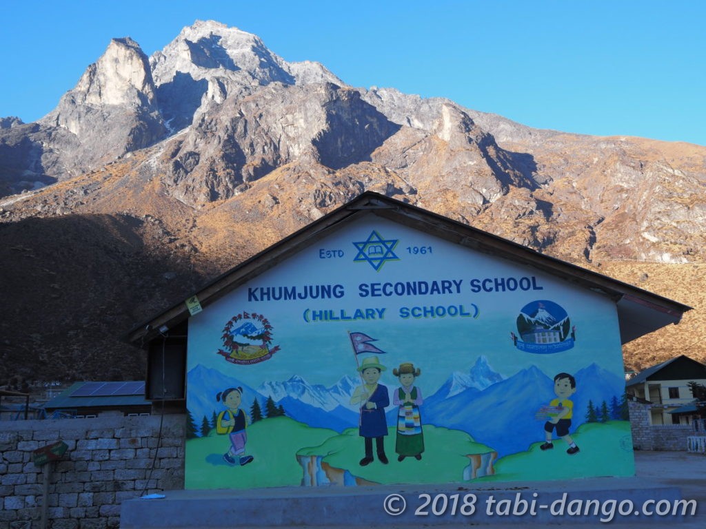 ヒラリースクールというのは、エベレストに初登頂したエドモンド・ヒラリーが作った学校のこと。小学校は村々にあるけれど、ハイスクールがあるのはこの辺りではクムジュンだけなので、親元を離れて寮に入って通う学生もたくさんいるそうです。