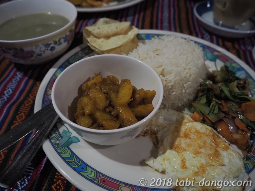 夕食はおいしいダルバート、フライドポテトにピザ。