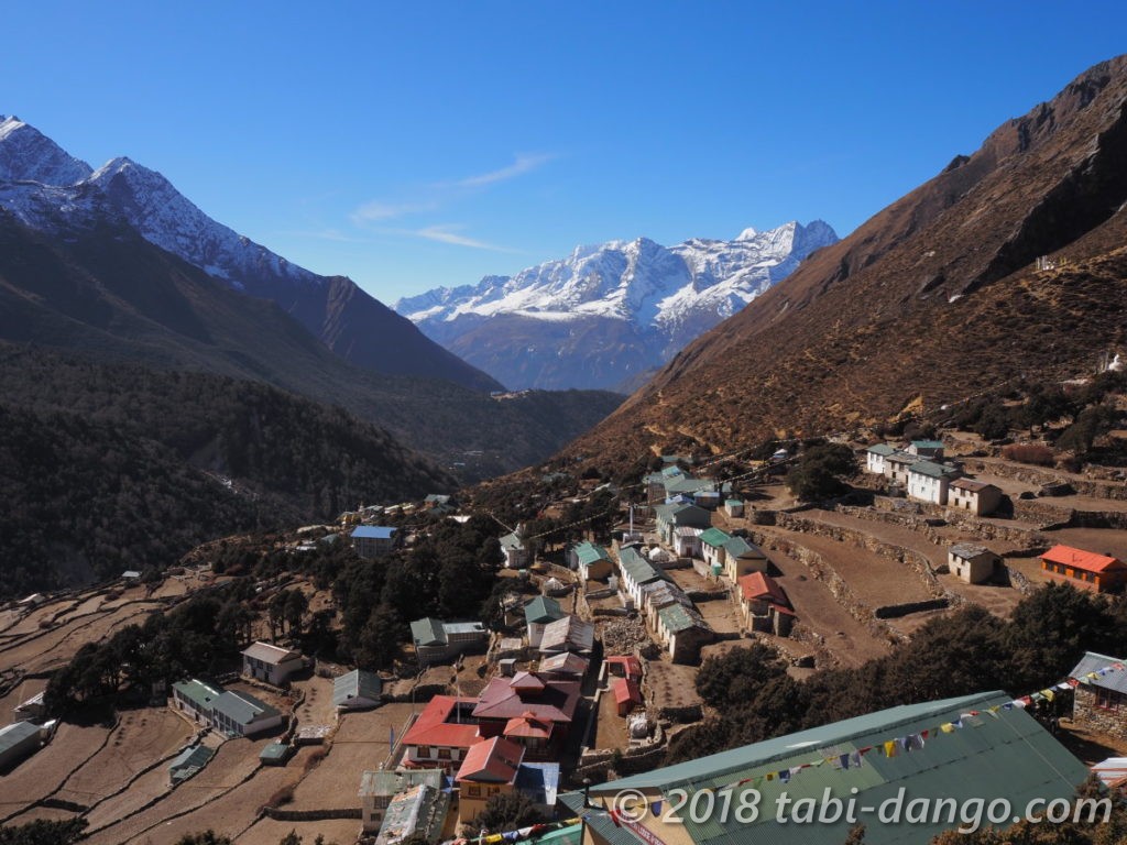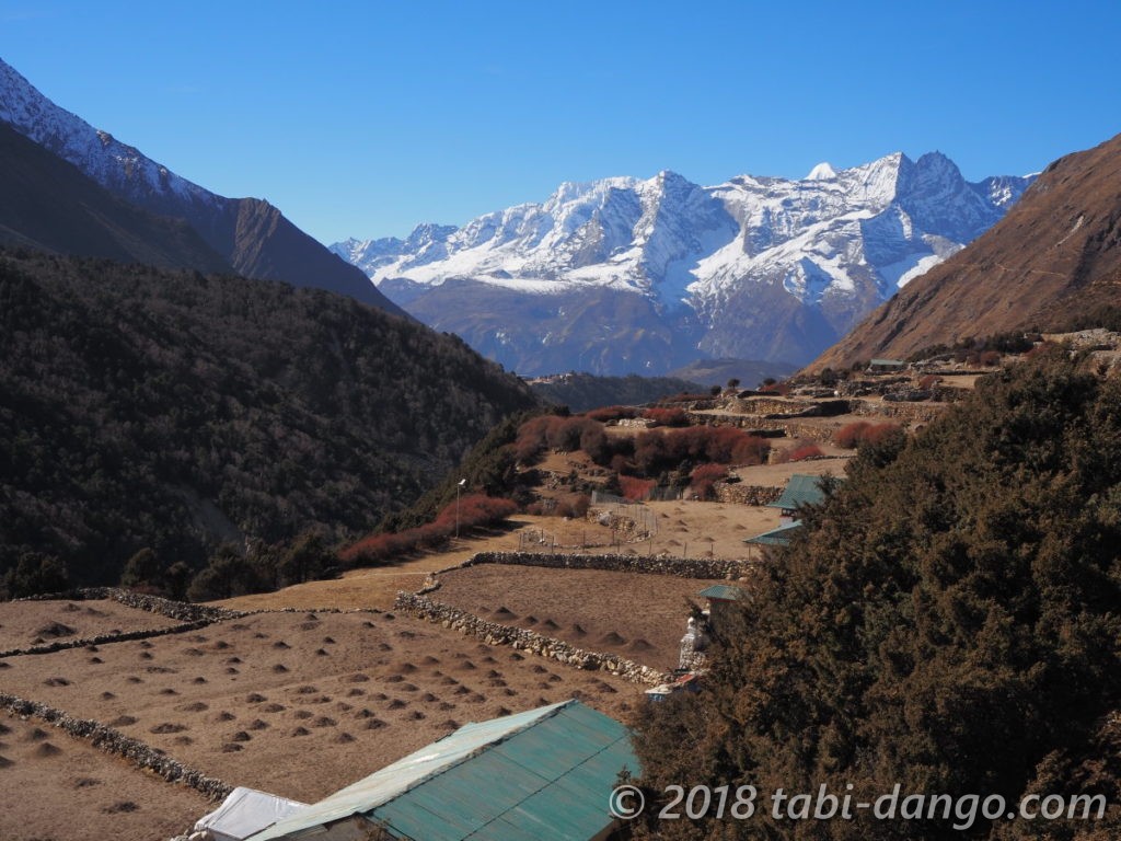 学校の横からはローツェやアマダブラムも良くみえましたが、一番印象的だったのは南側の景色。コンデリをバックにパンボチェの村全体がきれいに見渡せました。