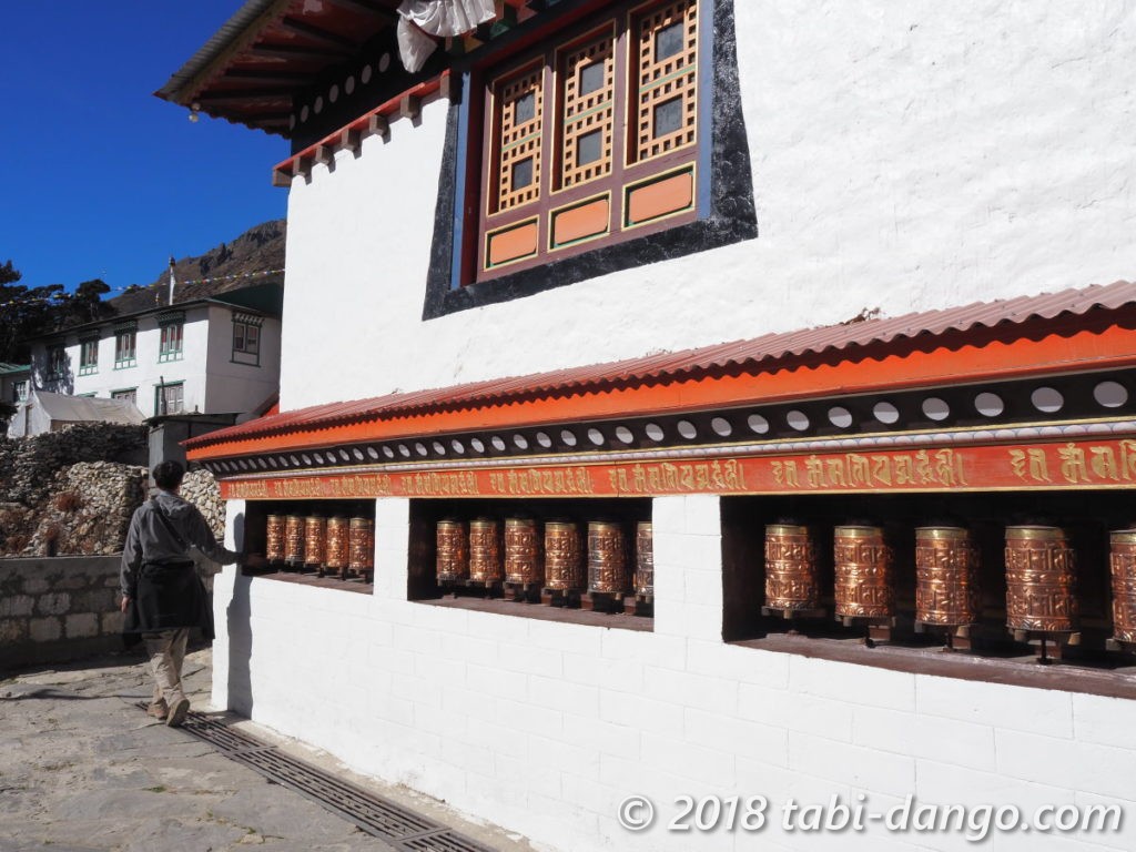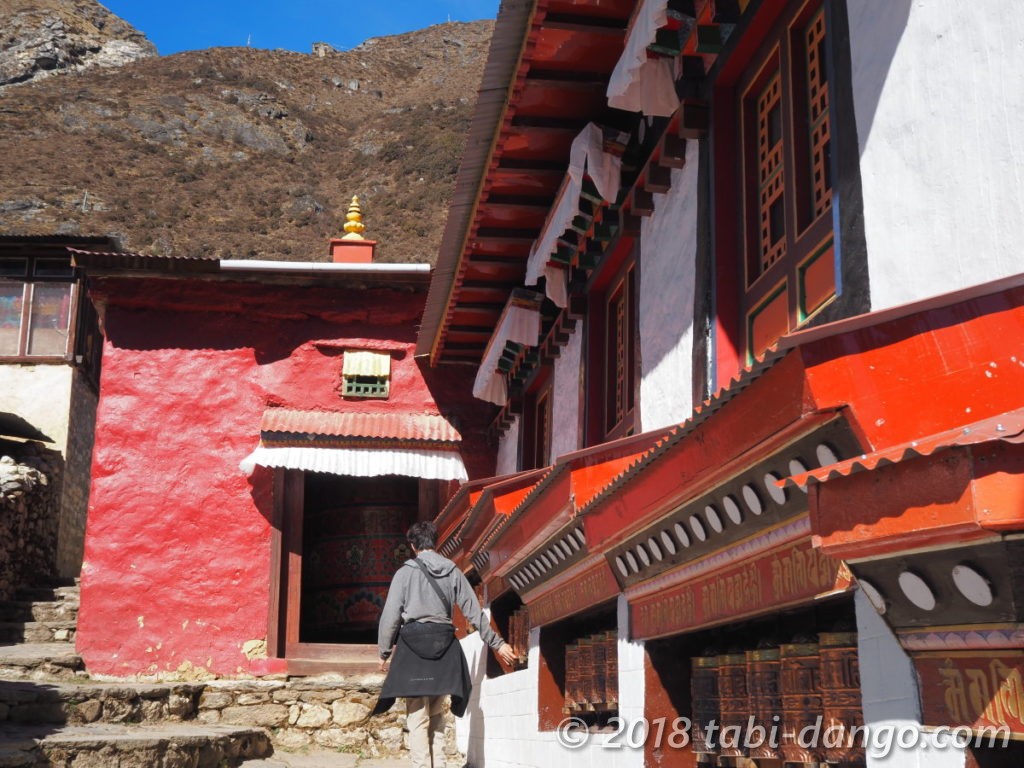 鮮やかな色彩、でこぼこの壁、ずらりと並んだマニ車。とても風格があるお寺でした。