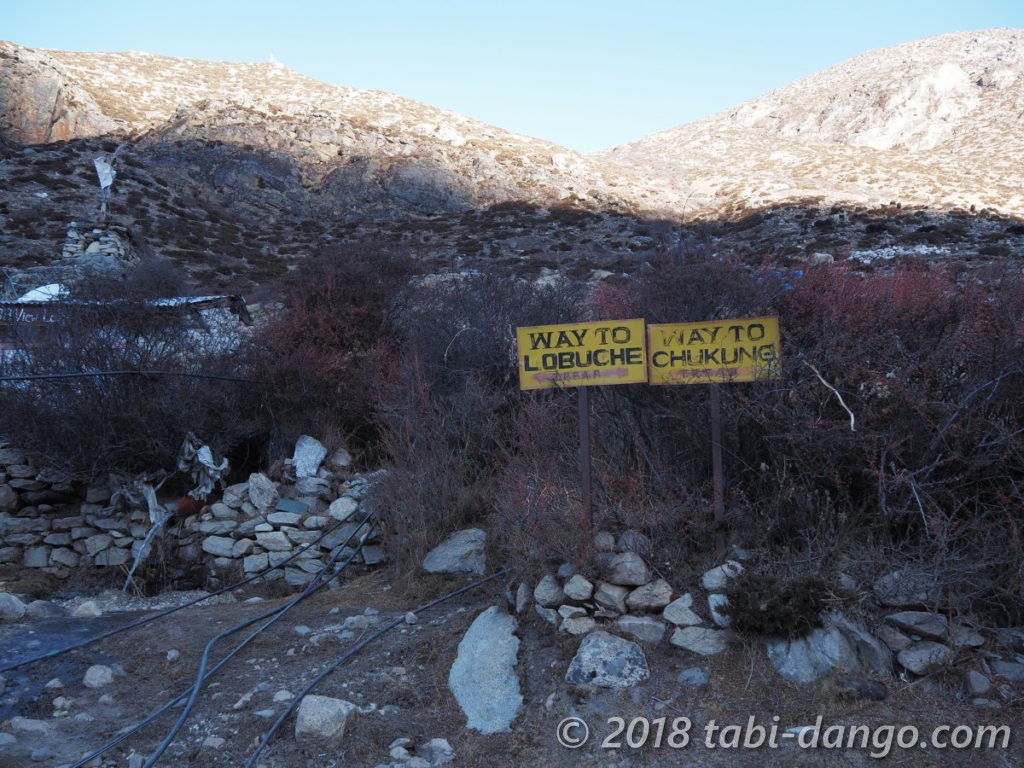 9時10分、チュクンへ出発。村はずれにロブチェとの分岐があり、チュクンへはさらに村の奥方向へと進んでいきました。