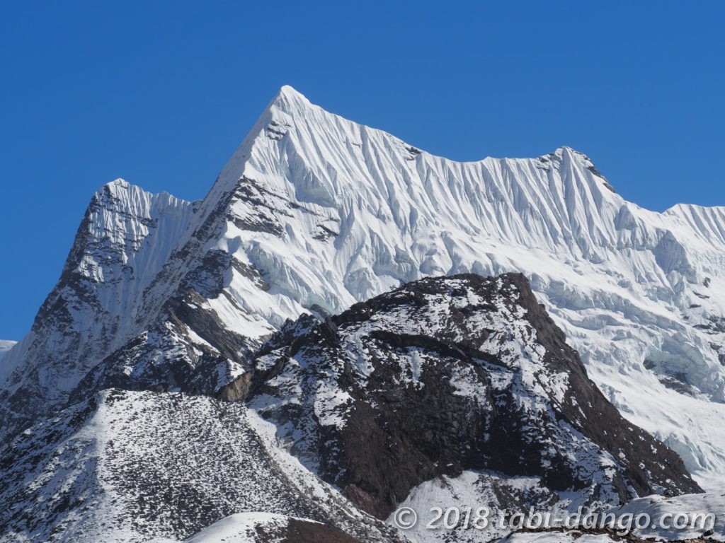 ヒマラヤひだのカーテン。ヒマラヤの山々に神様が住んでいるとしたら、絶対に真っ白のドレスの女神様が住んでいそうな山です。