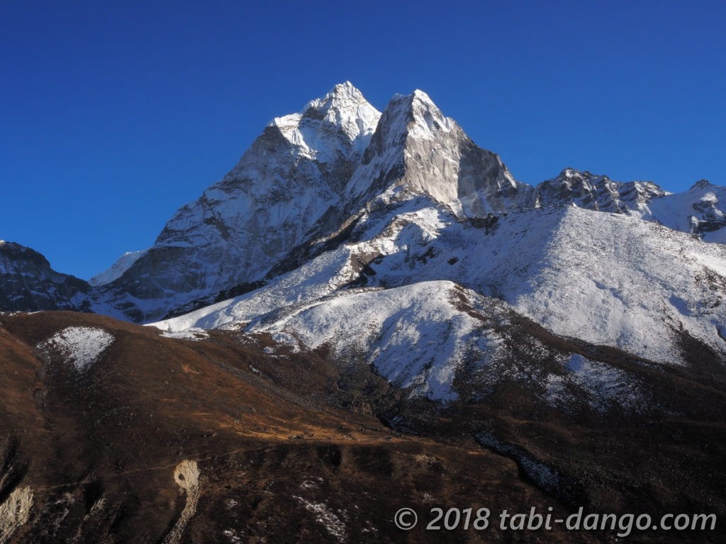 アマダブラムは手の届くような場所にそびえています。アマダブラムはよく見る角度もゆったりとしていいけれど、こちらからだとシャープでまた格好よかったです。