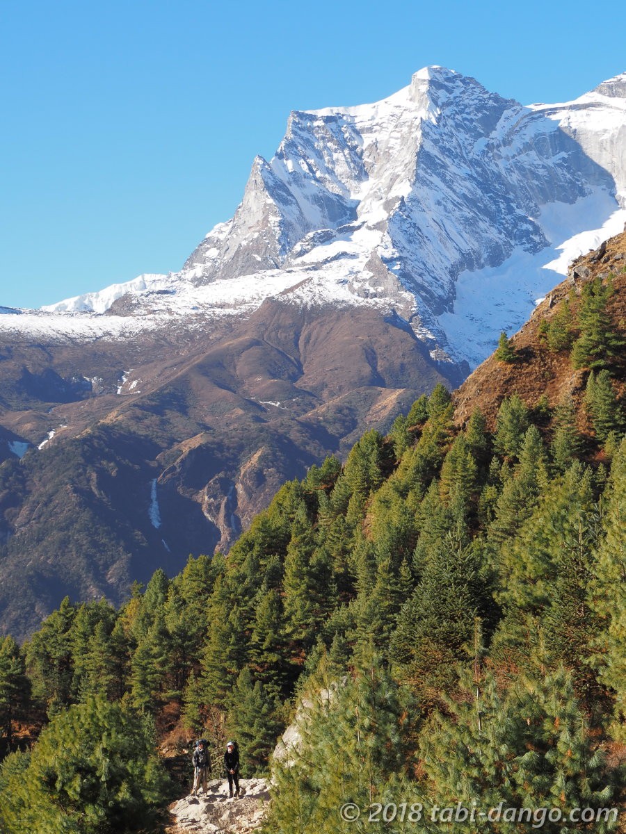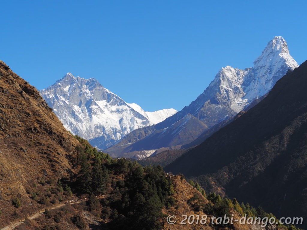 タンボチェやパンボチェの方向。あぁあの道は大変だったなぁとか思い返しながら歩いていきました。
