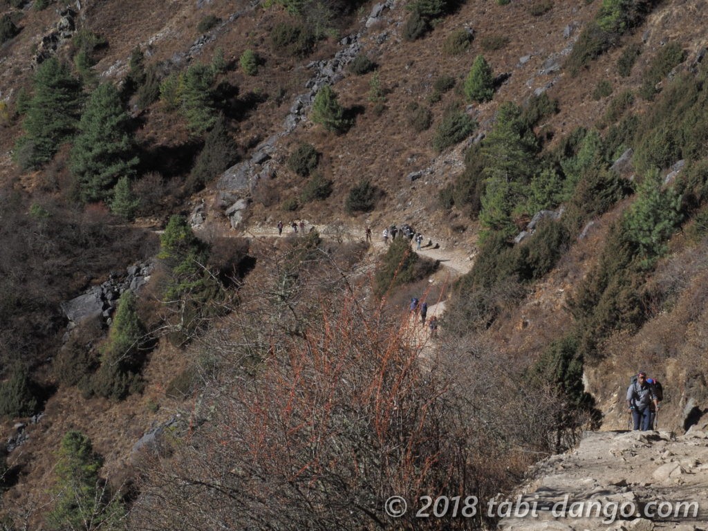 ここからナムチェまでの間、次々とトレッカー、ポーターさん、ヤクやロバの隊列とすれ違いました。12月でこの賑わいならピークシーズンには数珠繋ぎなのかもしれません。