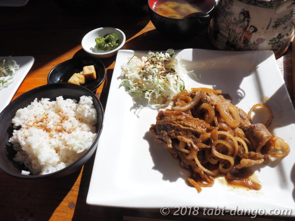今日は生姜焼き定食。お肉も玉ねぎもたっぷり。甘辛しょうが味が最高でした。