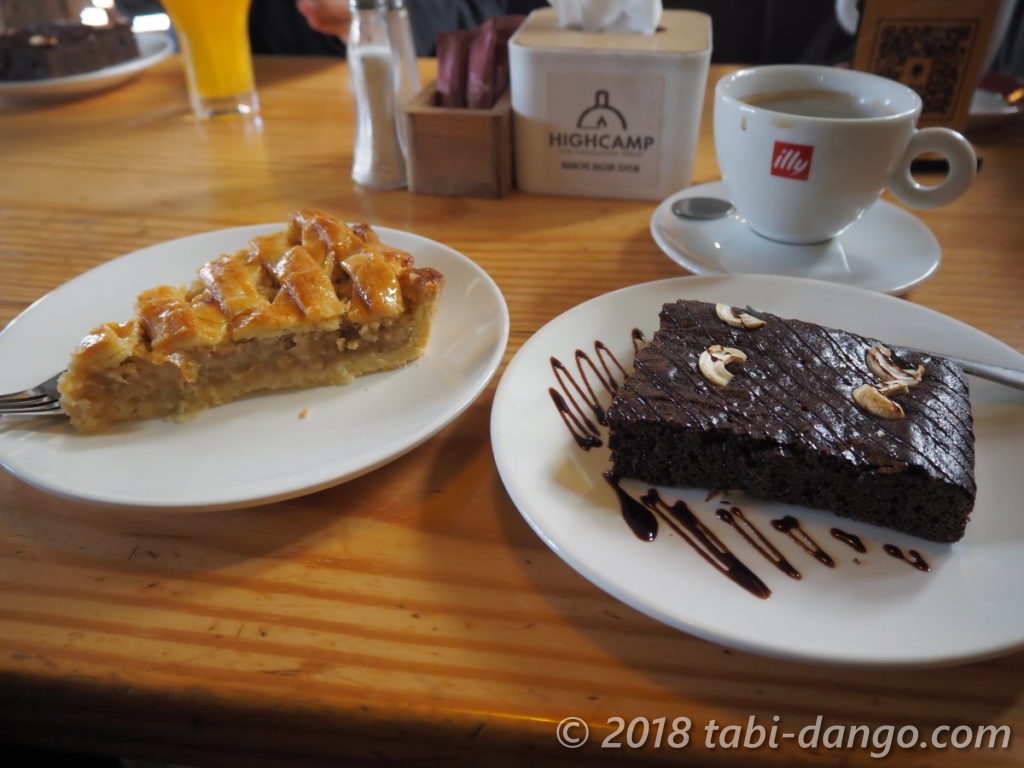 結局、前回も来たハイキャンプカフェに落ち着き、アップルパイとブラウニーを注文して夕方までまったり。