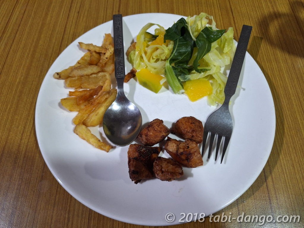 ただ付け加えておくと、翌朝チェックアウトのときにはローストチキンは2人分しか会計に入っていませんでした。頭の中が「???」となりましたが、あえて何も聞かずそのまま2人分だけ支払ったので、最終的には1皿600ルピーになりました。