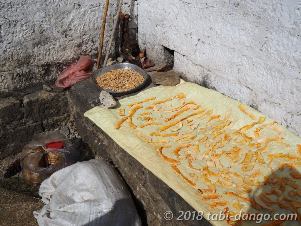 このロッジには広い畑もあり、お庭ではカボチャやカボチャの種を乾燥中。発酵中の大根の漬物もあり、おいしそうでした。